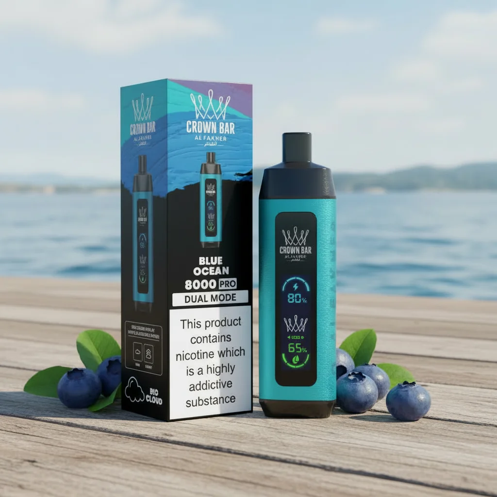 The Crown Bar Al Fakher 8000 Puffs in Blue Ocean is a fantastic choice for those looking to enhance their vaping experience. Its refreshing flavor, user-friendly design, and long-lasting capacity make it perfect for anyone who enjoys an excellent and convenient vaping option. Treat yourself to the essence of the ocean with every puff!