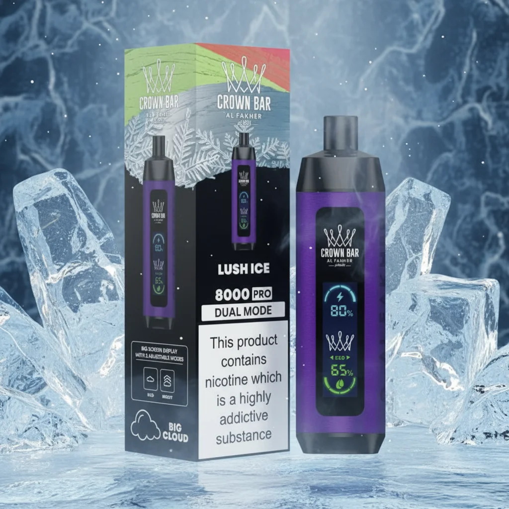 The crown-bar-al-fakher-8000-puffs-lush-ice disposable vape delivers smooth and refreshing shisha flavour. Designed for UAE vapers, it’s compact, lightweight, and ready to use immediately. Draw-activated and portable, it provides consistent taste from the first puff to the last.