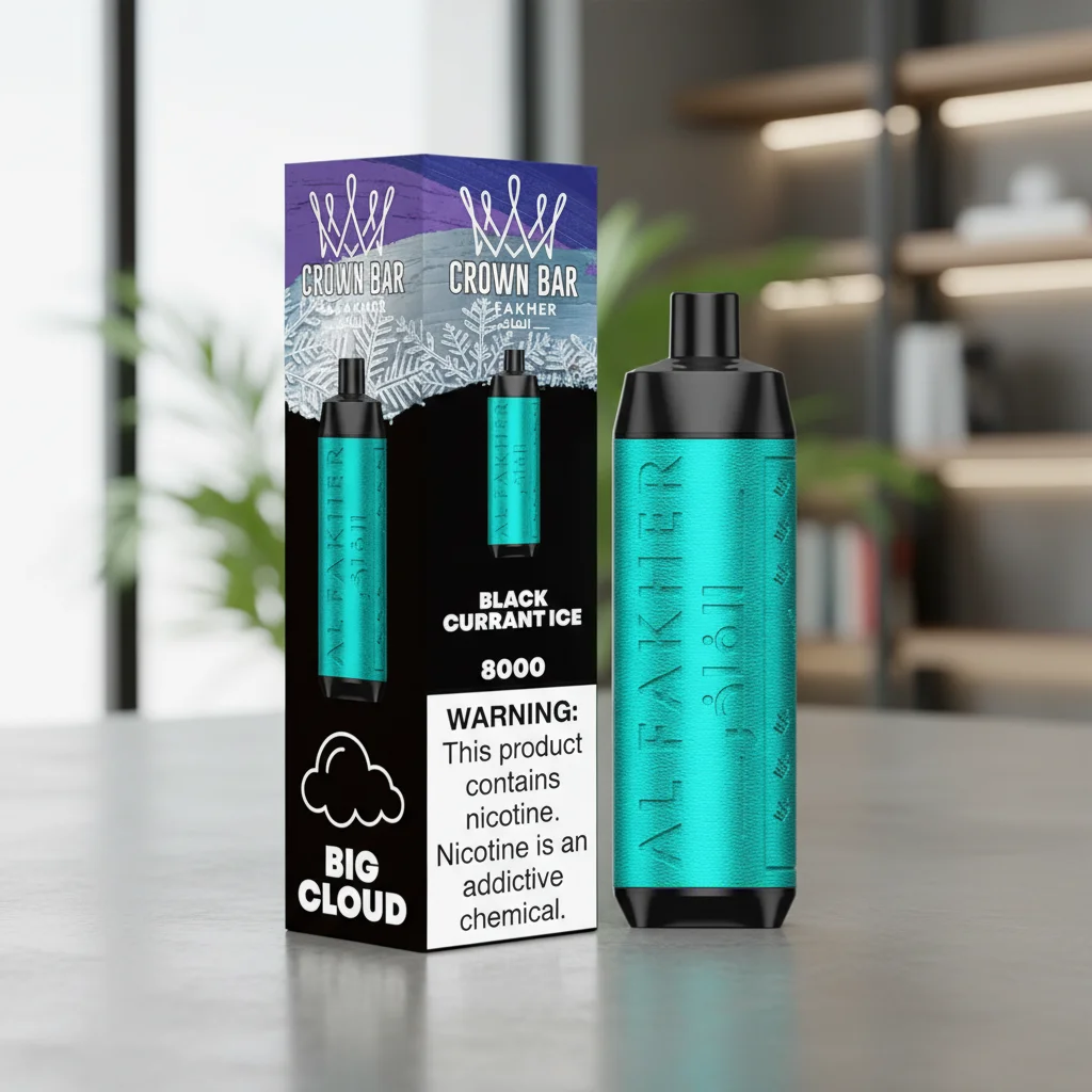 The crown-bar-al-fakher-black-currant-ice disposable vape delivers smooth and refreshing shisha flavour with up to 8,000 puffs. Designed for UAE vapers, it’s compact, lightweight, and ready to use immediately. Draw-activated and portable, it provides consistent taste from the first puff to the last.