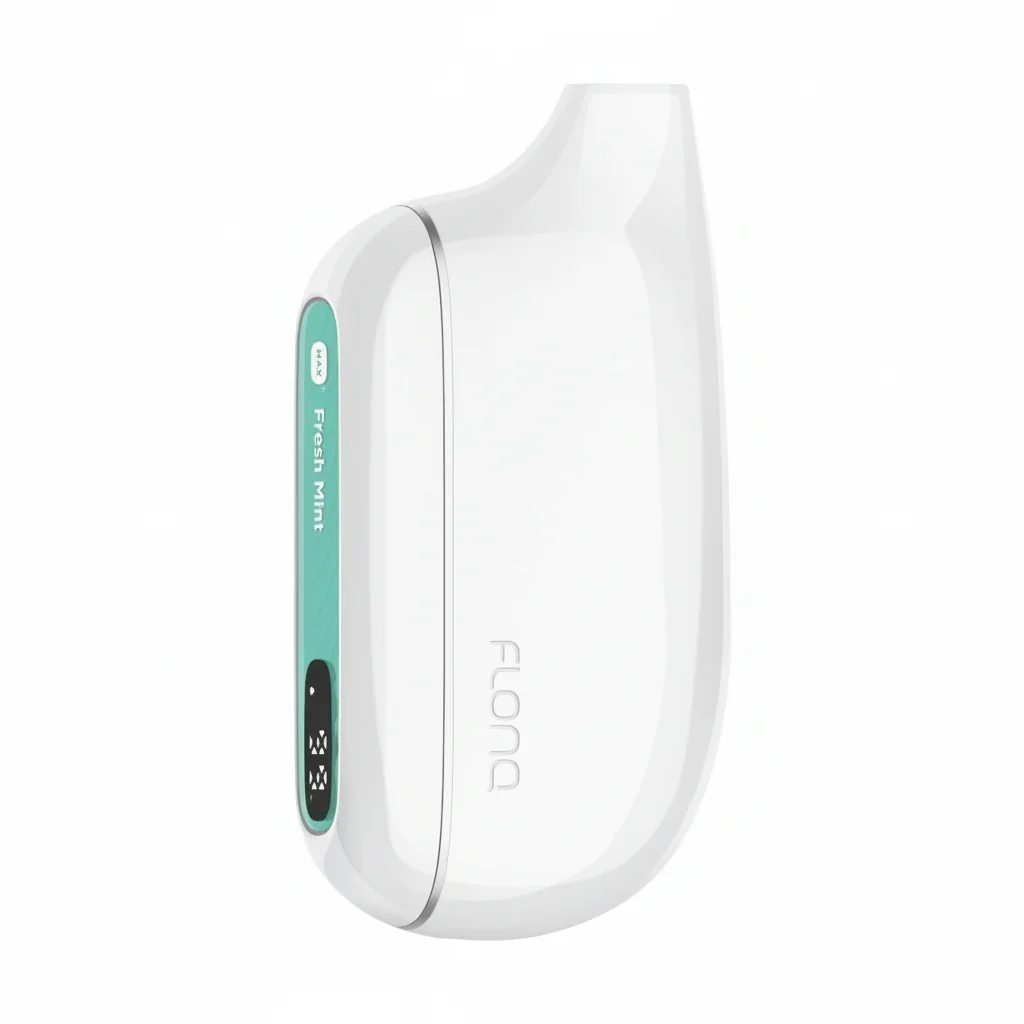 Fresh Mint FLONQ Max Smart Vape 8000 Puffs is a smart disposable vape pre-filled with fresh mint e-liquid delivering up to 8000 puffs. It features a built-in display showing battery and e-liquid levels in real time. Draw-activated, no buttons, no refilling — just open and vape.