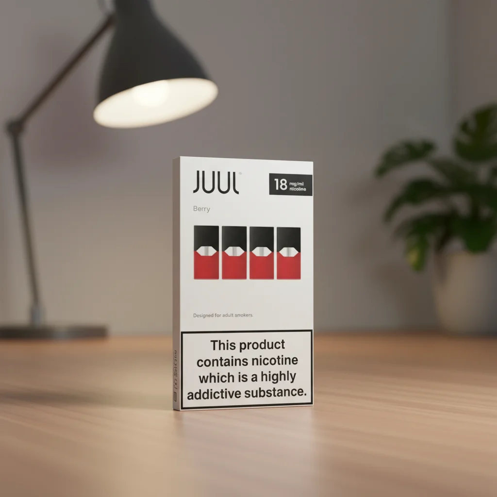 Yes, Juul Berry Pods 18mg are completely tobacco-free and use nicotine salt e-liquid with no loose or combustible tobacco material inside. You get smooth 18mg nicotine satisfaction with sweet mixed berry flavor — without the tar, ash, or smoke of a traditional cigarette.