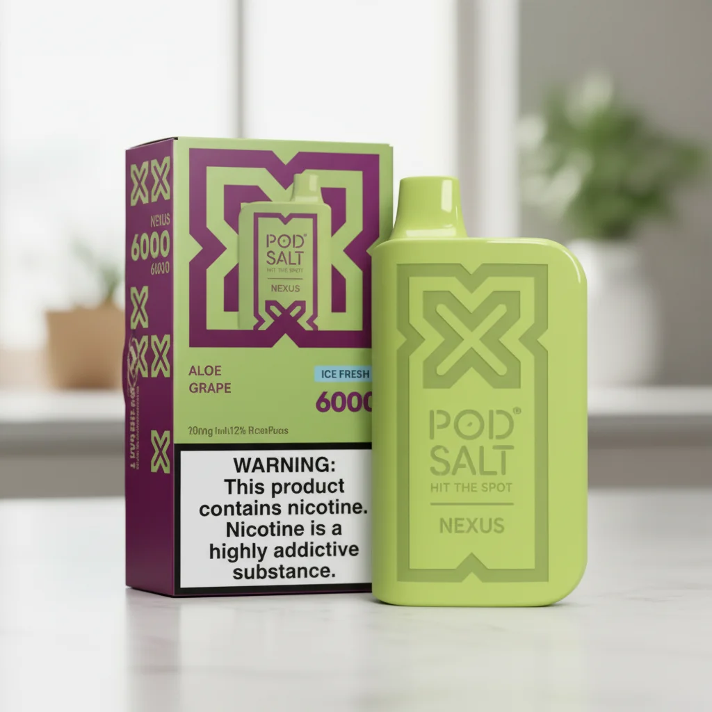 Nexus Aloe Grape is a draw-activated disposable vape filled with 20mg/ml nicotine salt. Available in 2000 and 6000 puff options, it suits both light and heavy users.