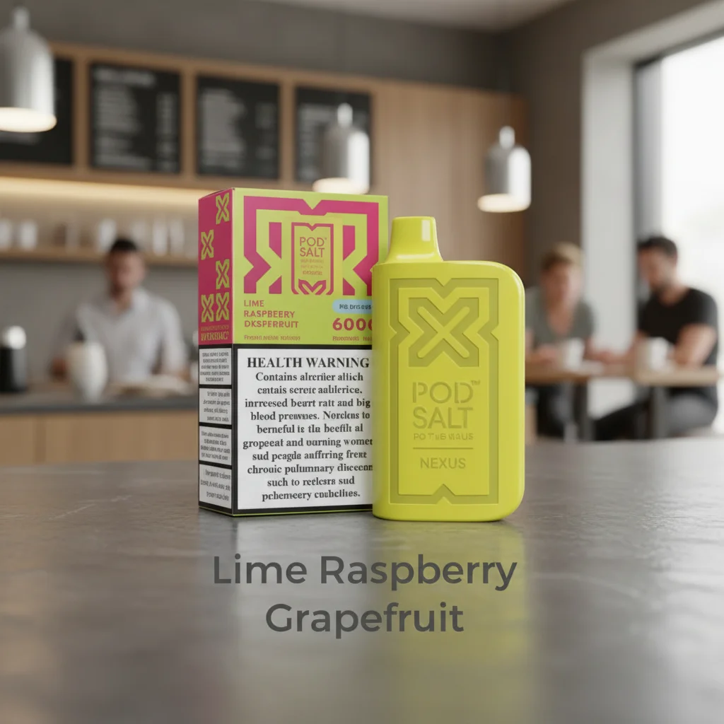 The Nexus Lime Raspberry Grapefruit is a draw-activated disposable device with 2% nicotine salt and 6000 puffs, designed for adult vapers seeking a long-lasting, fruity experience.
