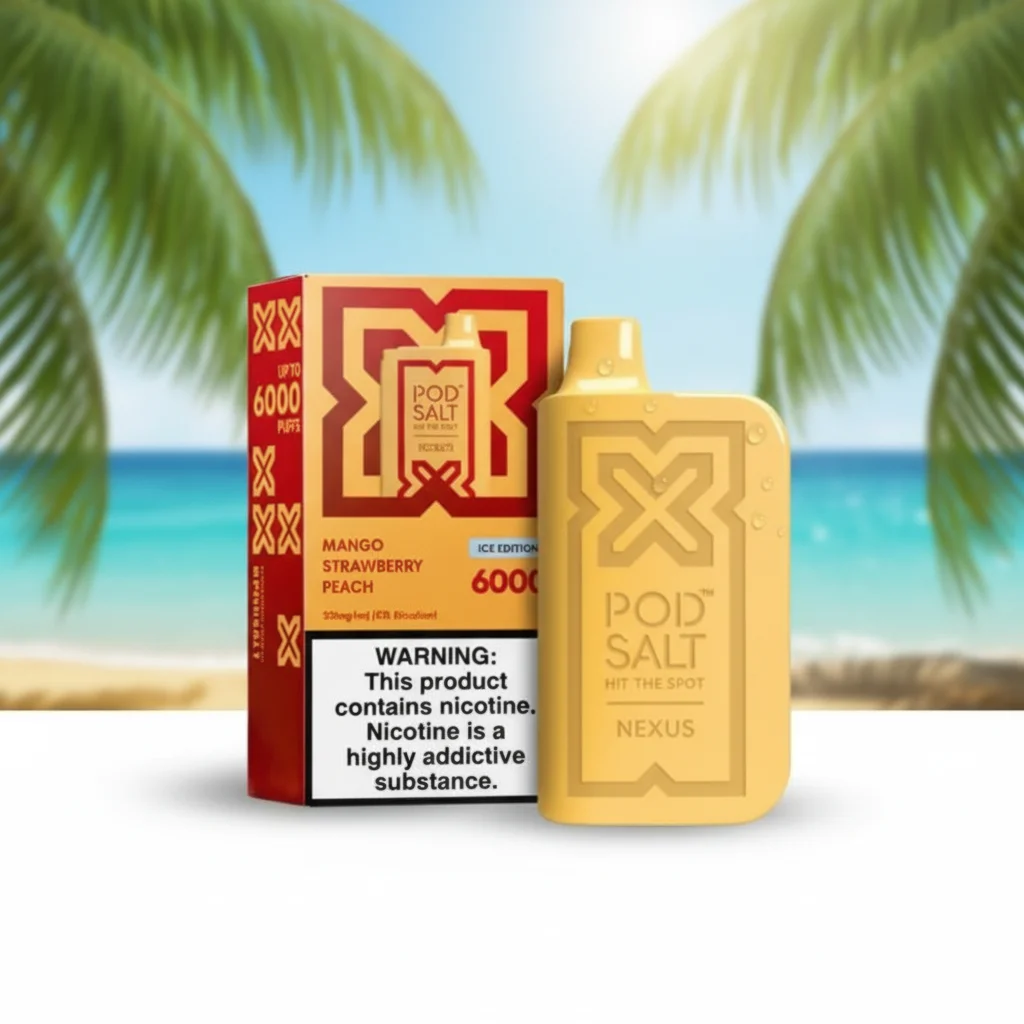 The Nexus Mango Strawberry Peach is a draw-activated disposable device with 2% nicotine salt and 6000 puffs, designed for adult vapers who want a long-lasting, flavourful experience.