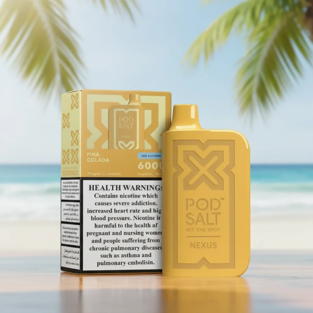 The Nexus Pina Colada is a draw-activated disposable device with 2% nicotine salt and 6000 puffs, designed for adult vapers seeking long-lasting tropical flavour.