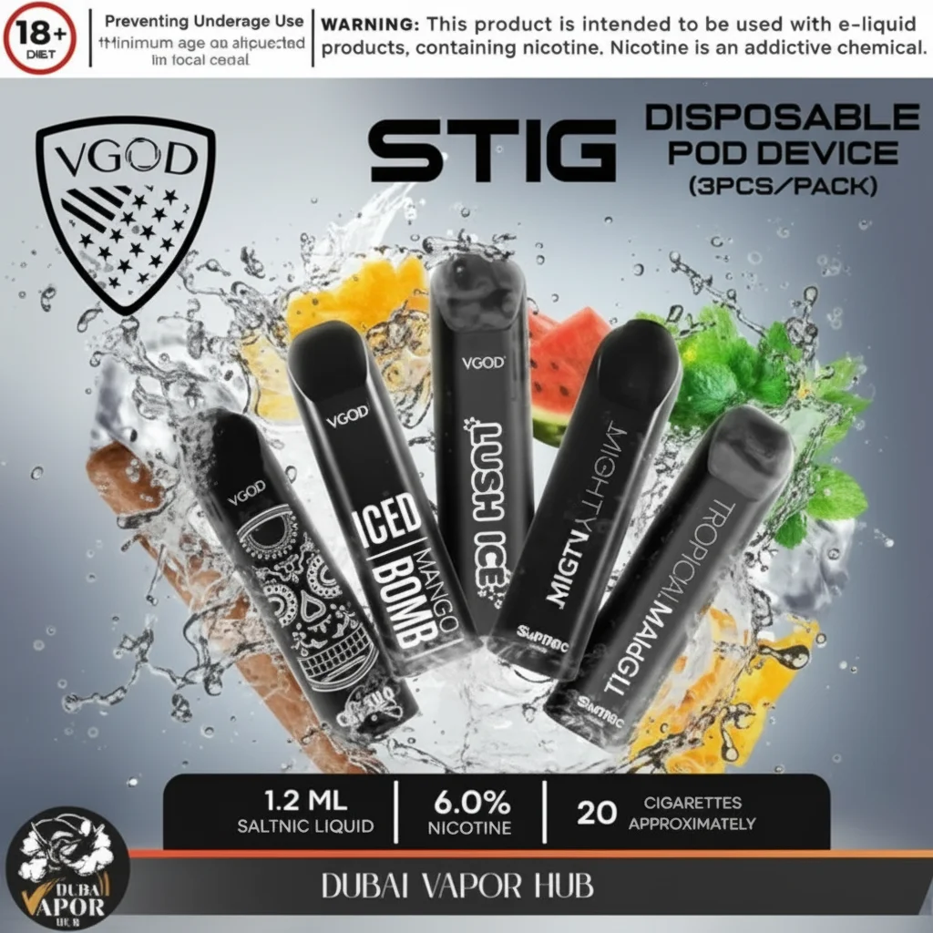 Visit trusted online vape stores like Dubai Vapor Hub to buy VGOD STIG Disposables at competitive prices. With quick delivery in Dubai, Ajman, and across the UAE, your favorite disposable pods are just a click away.